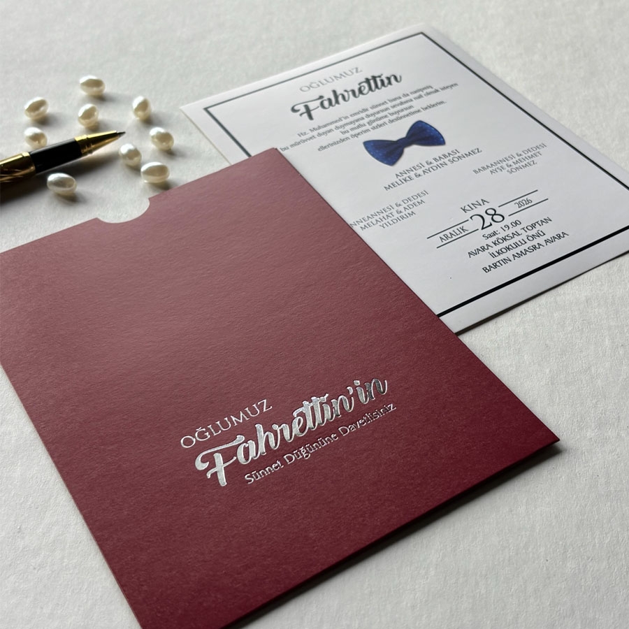 Zarf üzeri altın yaldız baskı, iç kart ofset baskıdır.
