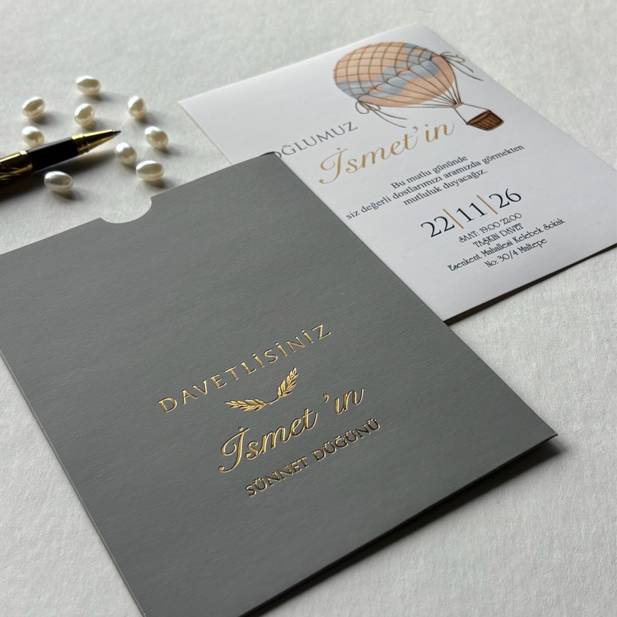 Zarf üzeri altın yaldız baskı, iç kart ofset baskıdır.
