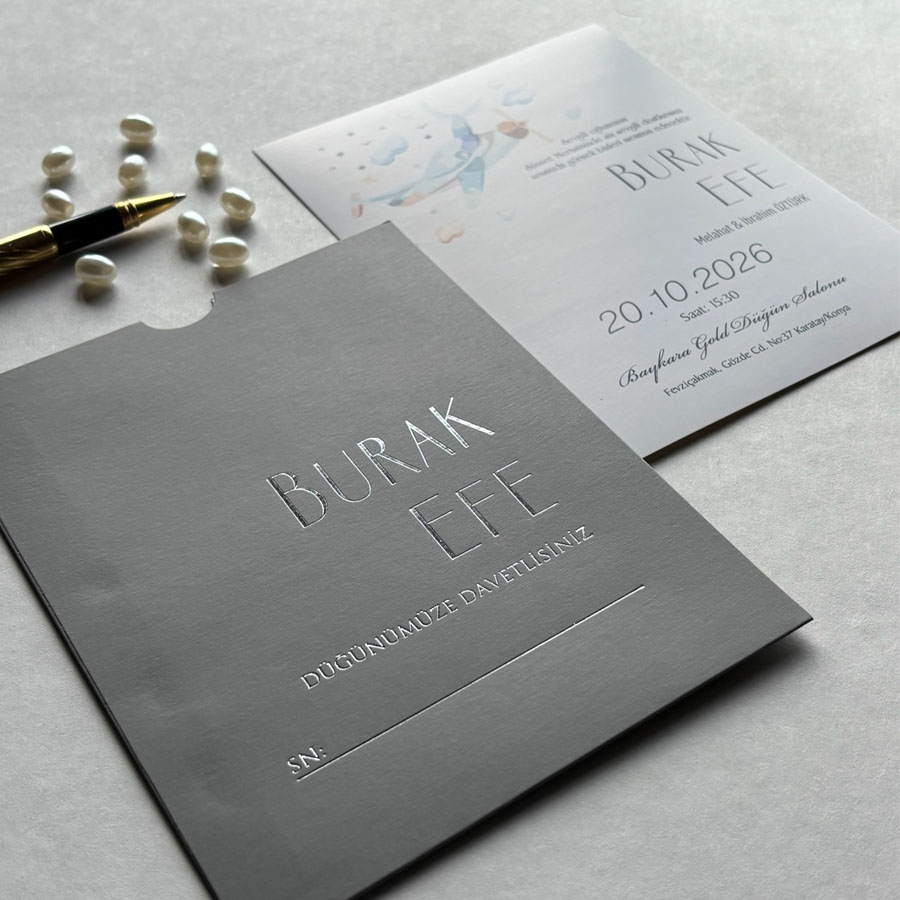 Zarf üzeri altın yaldız baskı, iç kart ofset baskıdır.