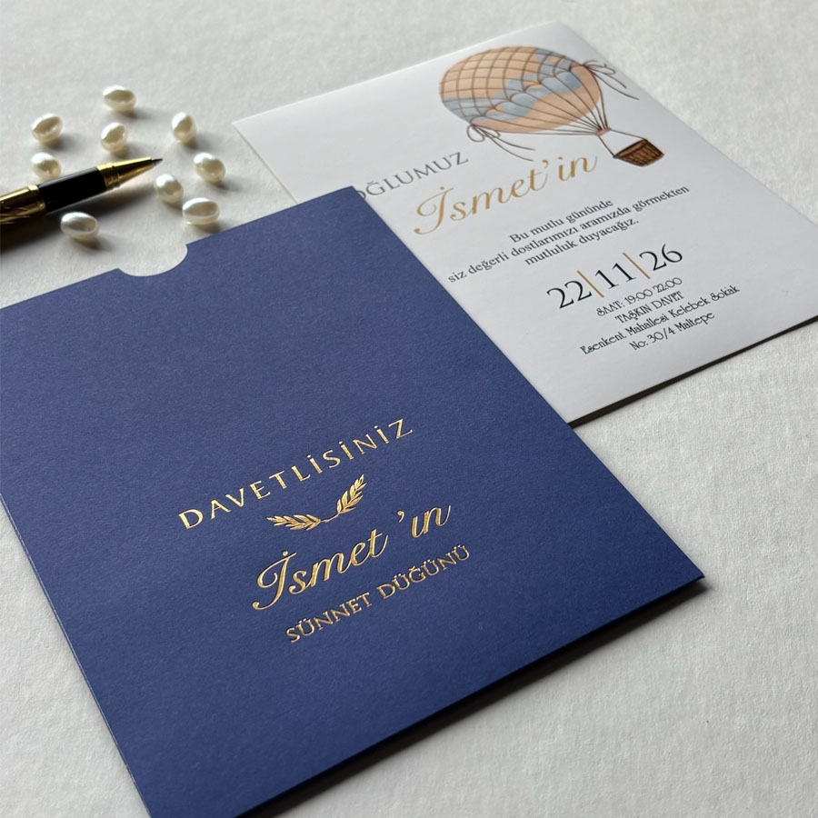 Zarf üzeri altın yaldız baskı, iç kart ofset baskıdır.