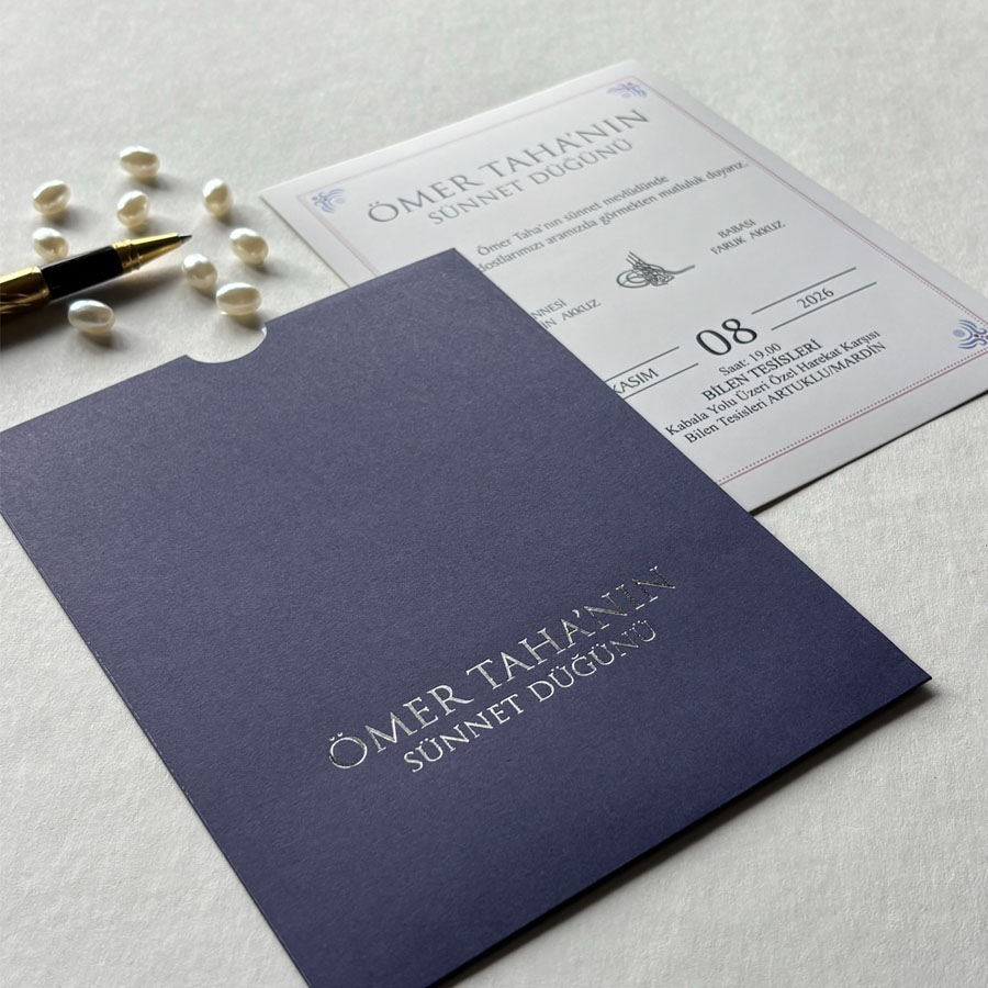 Zarf üzeri altın yaldız baskı, iç kart ofset baskıdır.