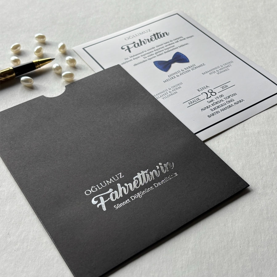 Zarf üzeri altın yaldız baskı, iç kart ofset baskıdır.