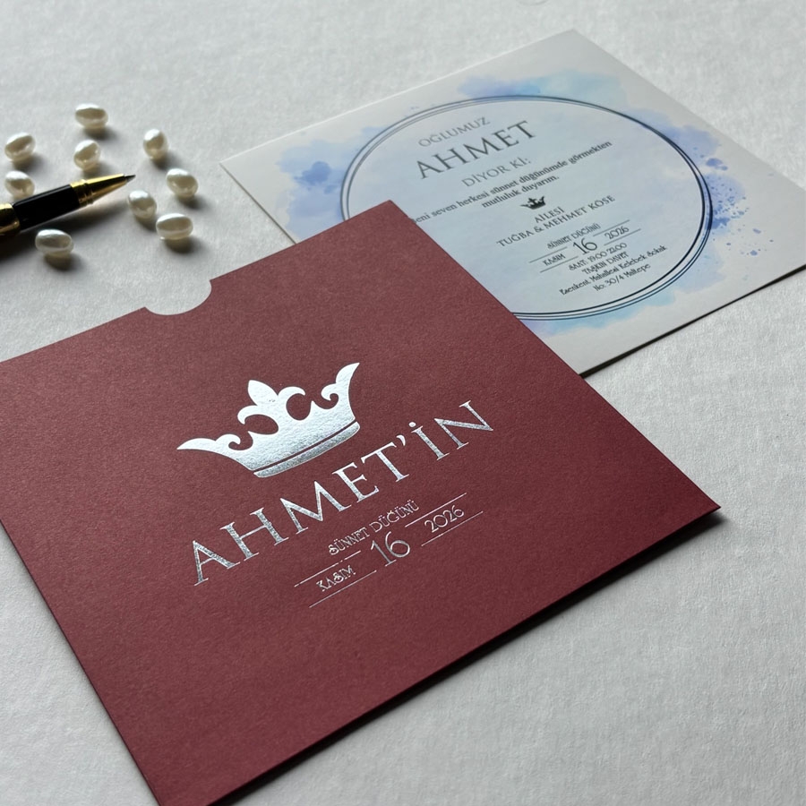Zarf üzeri altın yaldız baskı, iç kart ofset baskıdır.