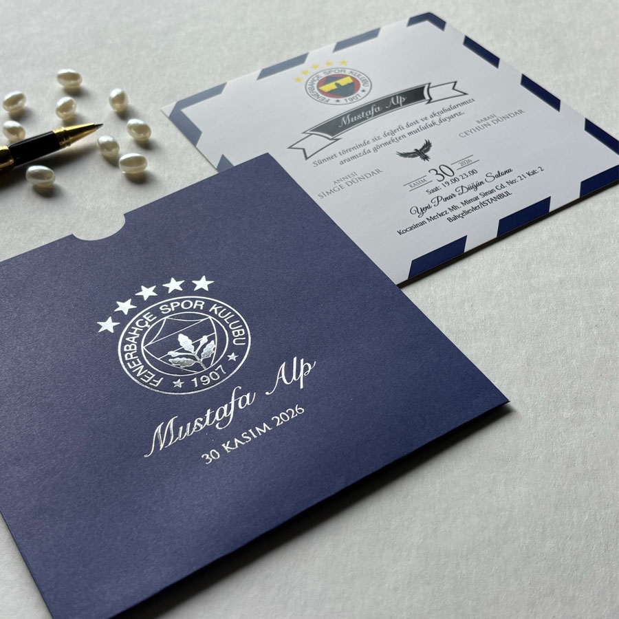 Zarf üzeri altın yaldız baskı, iç kart ofset baskıdır.