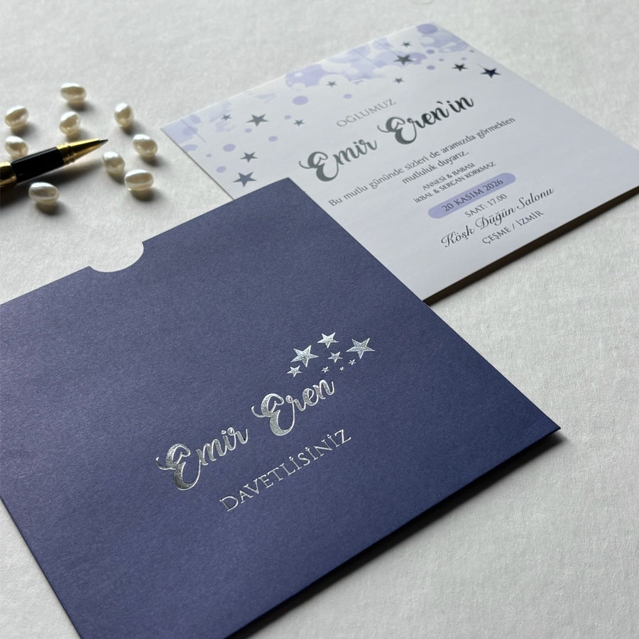 Zarf üzeri altın yaldız baskı, iç kart ofset baskıdır.