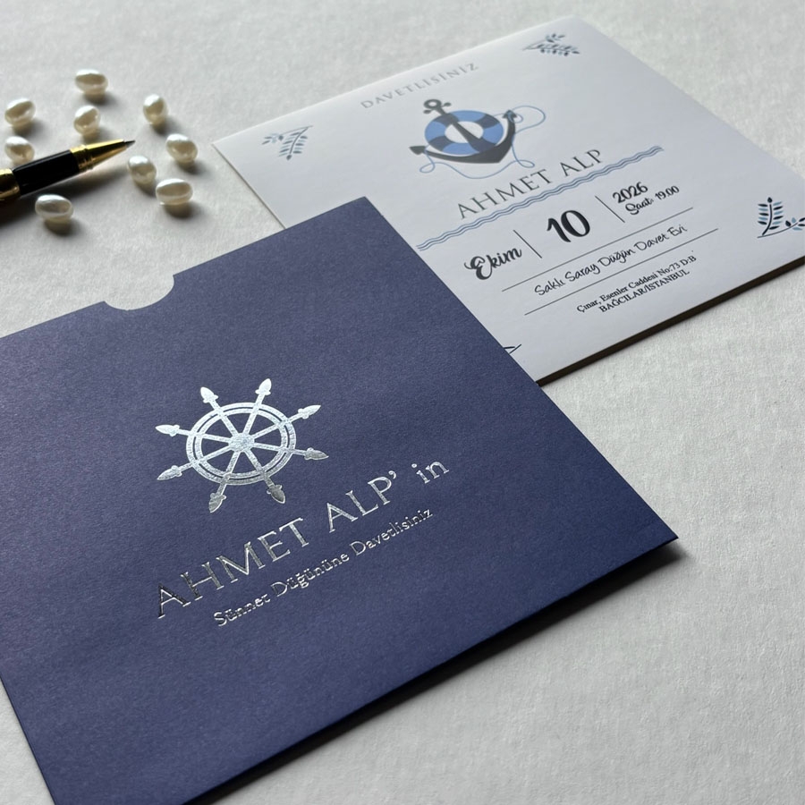 Zarf üzeri altın yaldız baskı, iç kart ofset baskıdır.