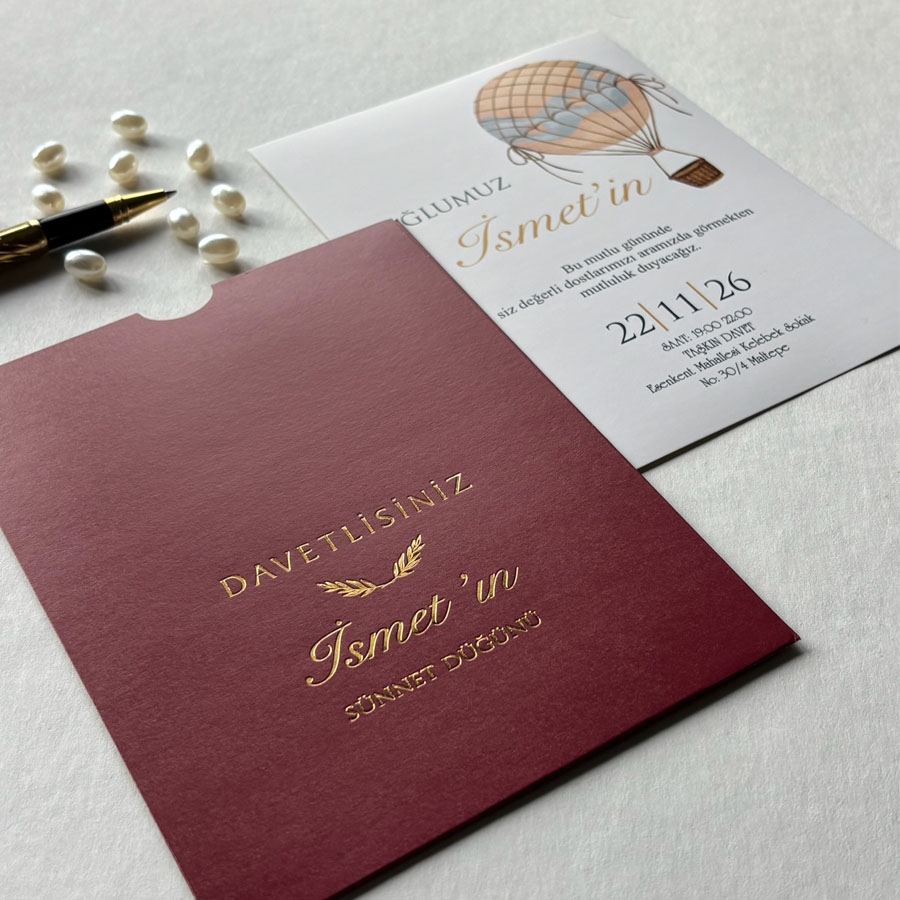 Zarf üzeri altın yaldız baskı, iç kart ofset baskıdır.