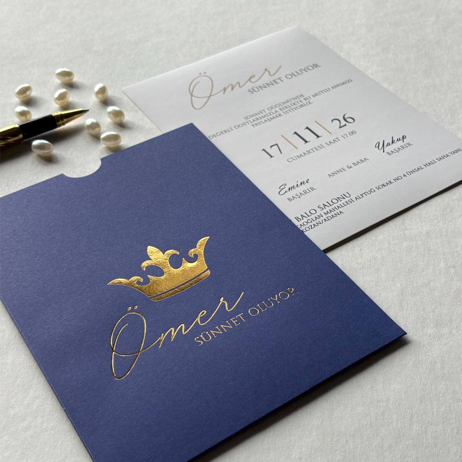 Zarf üzeri altın yaldız baskı, iç kart ofset baskıdır.
