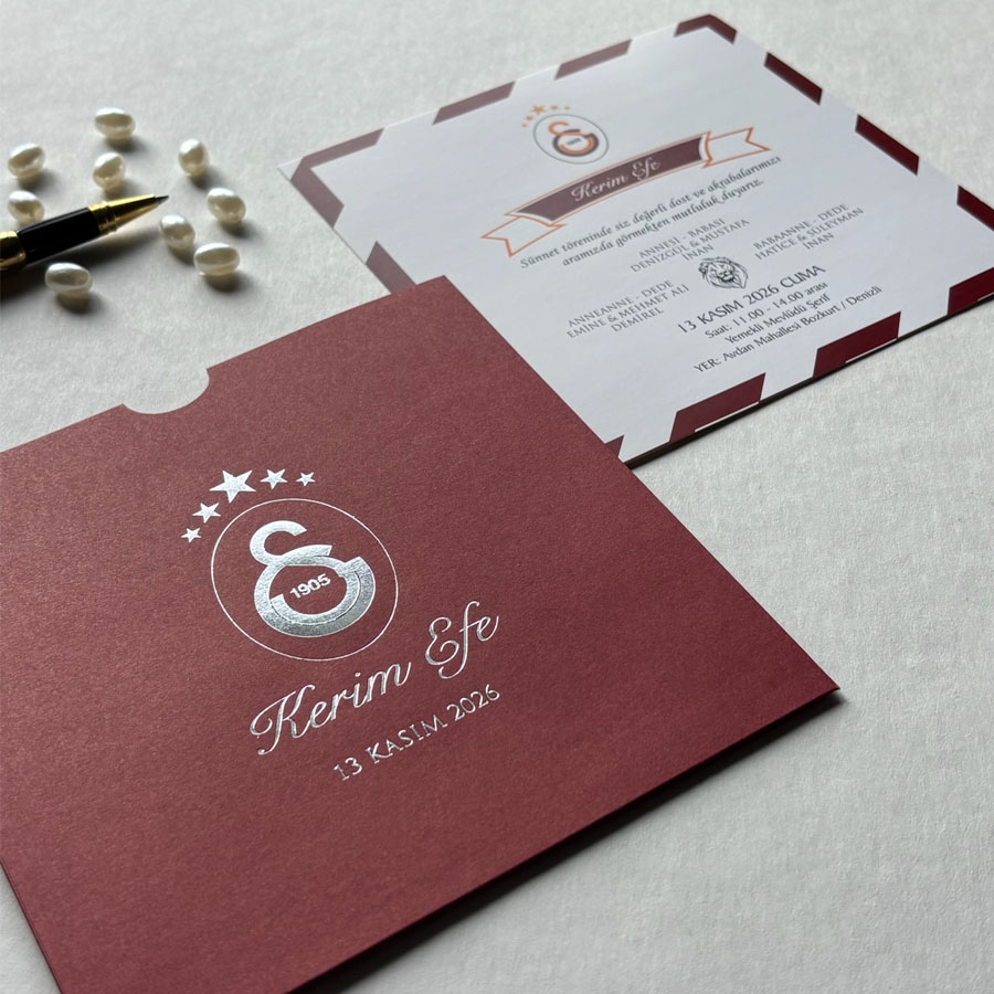 Zarf üzeri altın yaldız baskı, iç kart ofset baskıdır.