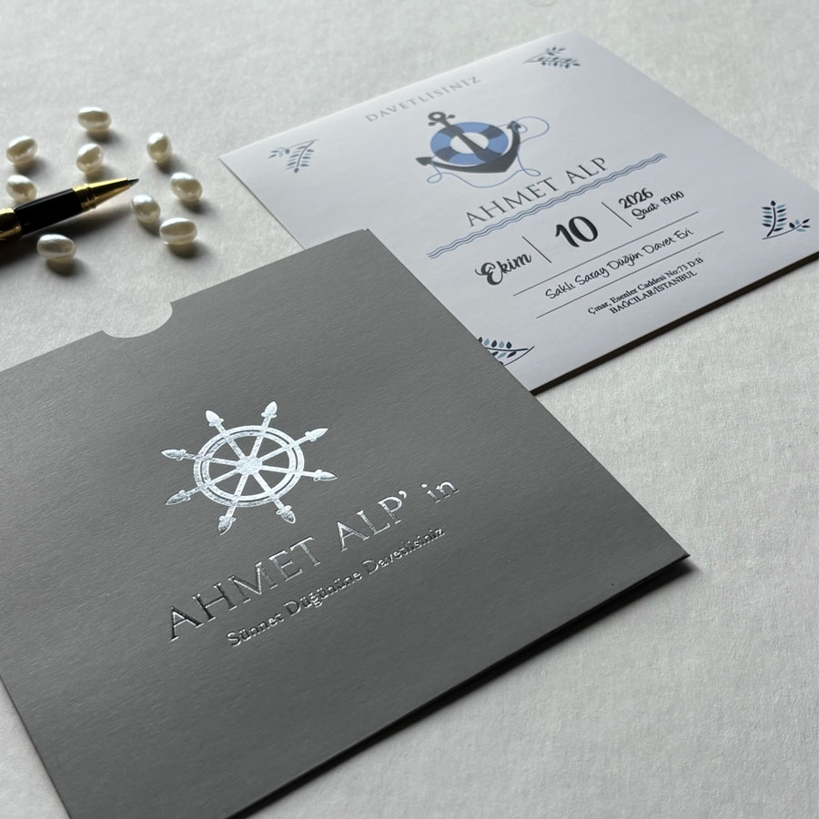 Zarf üzeri altın yaldız baskı, iç kart ofset baskıdır.