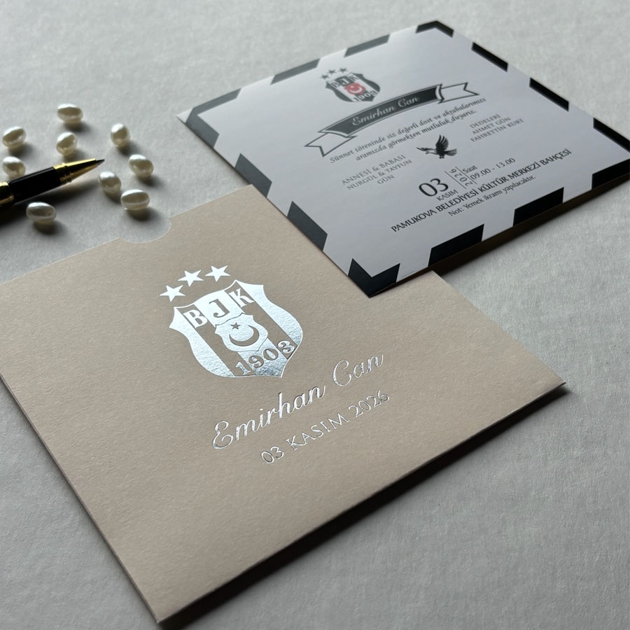 Zarf üzeri altın yaldız baskı, iç kart ofset baskıdır.