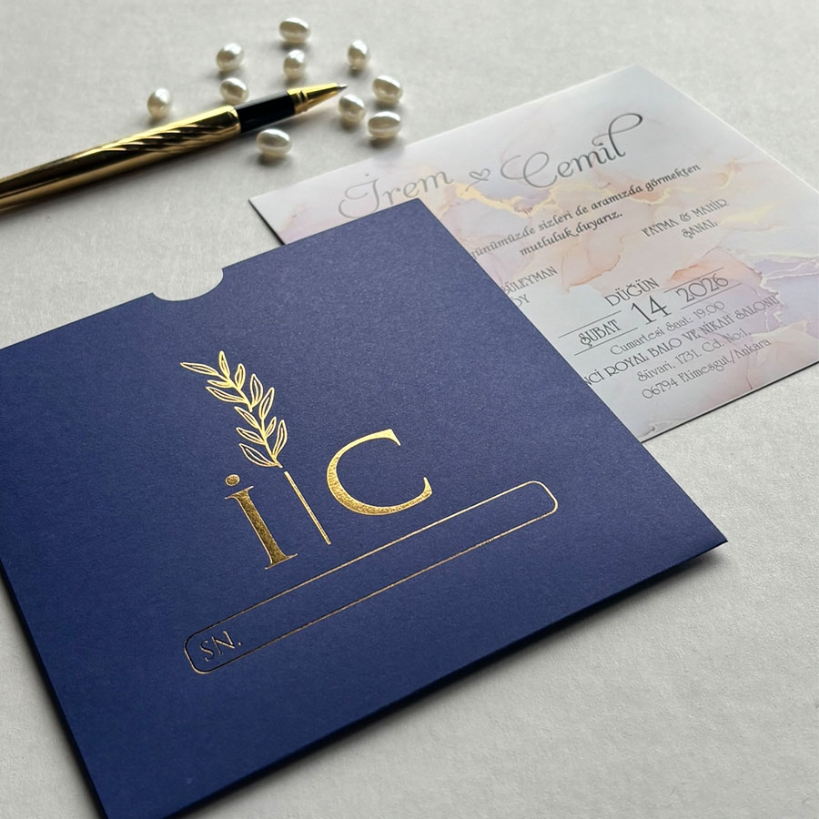 Kare Lacivert Zarf Gold Yaldızlı Davetiye 18