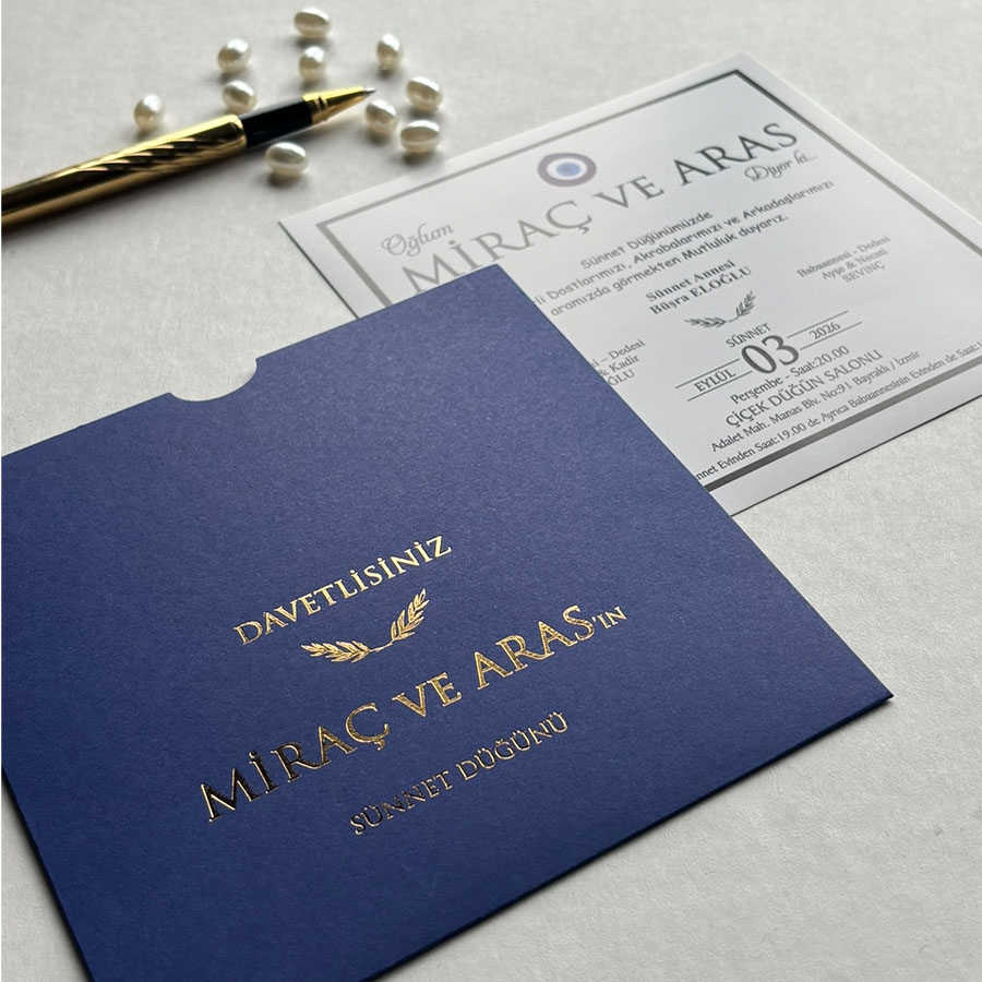 Zarf üzeri altın yaldız baskı, iç kart ofset baskıdır.