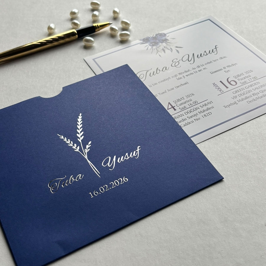 Zarf 220 gram renklendirilmiş bristol, iç kart ise 250 gram Amerikan Bristol karta baskı yapılmaktadır.