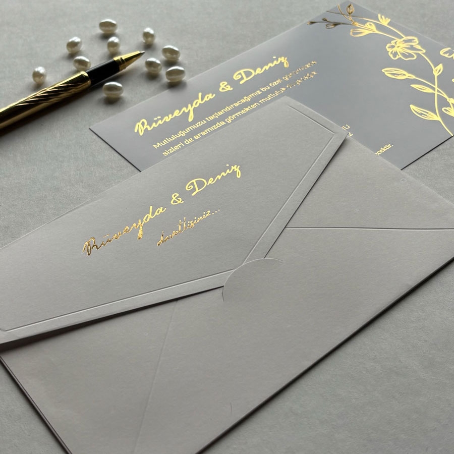 Zarf 220 gram renklendirilmiş bristol, iç kart ise 250 gram Amerikan Bristol karta baskı yapılmaktadır.