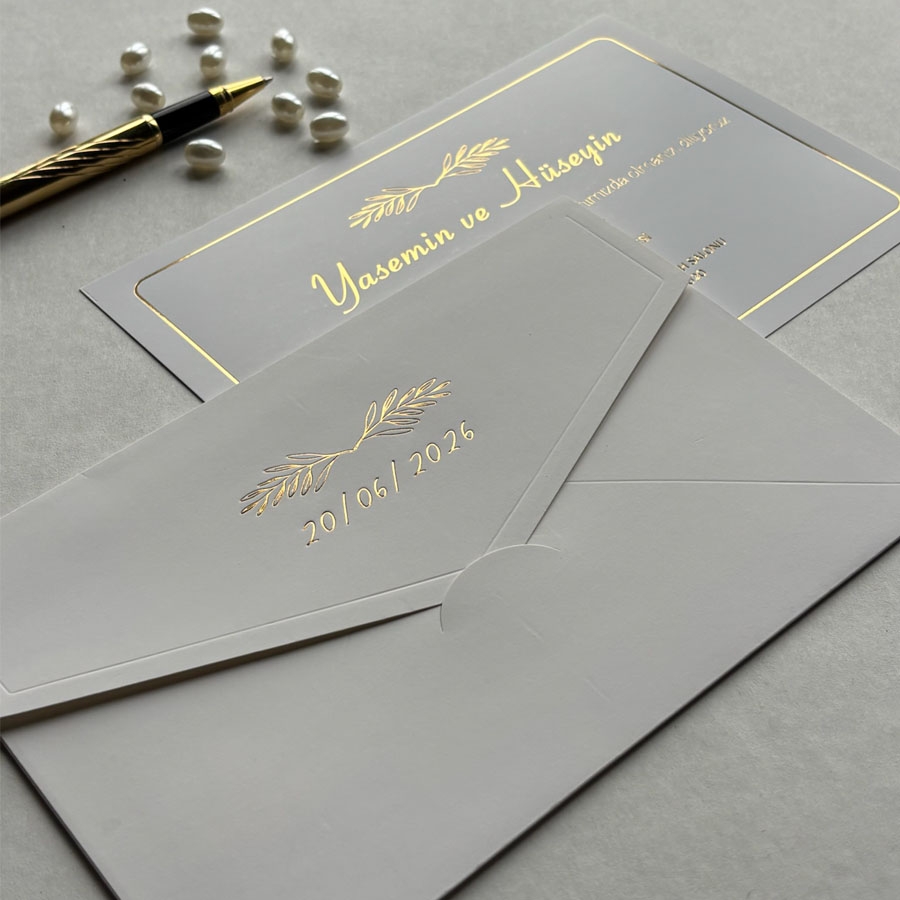 Zarf 220 gram renklendirilmiş bristol, iç kart ise 250 gram Amerikan Bristol karta baskı yapılmaktadır.