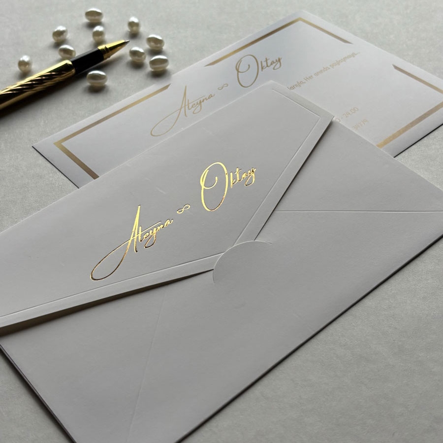 Zarf 220 gram renklendirilmiş bristol, iç kart ise 250 gram Amerikan Bristol karta baskı yapılmaktadır.