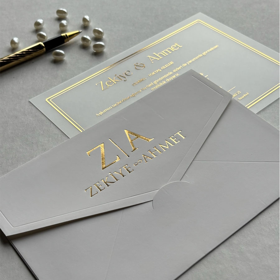 Zarf 220 gram renklendirilmiş bristol, iç kart ise 30 Mikron Şeffaf karta baskı yapılmaktadır.