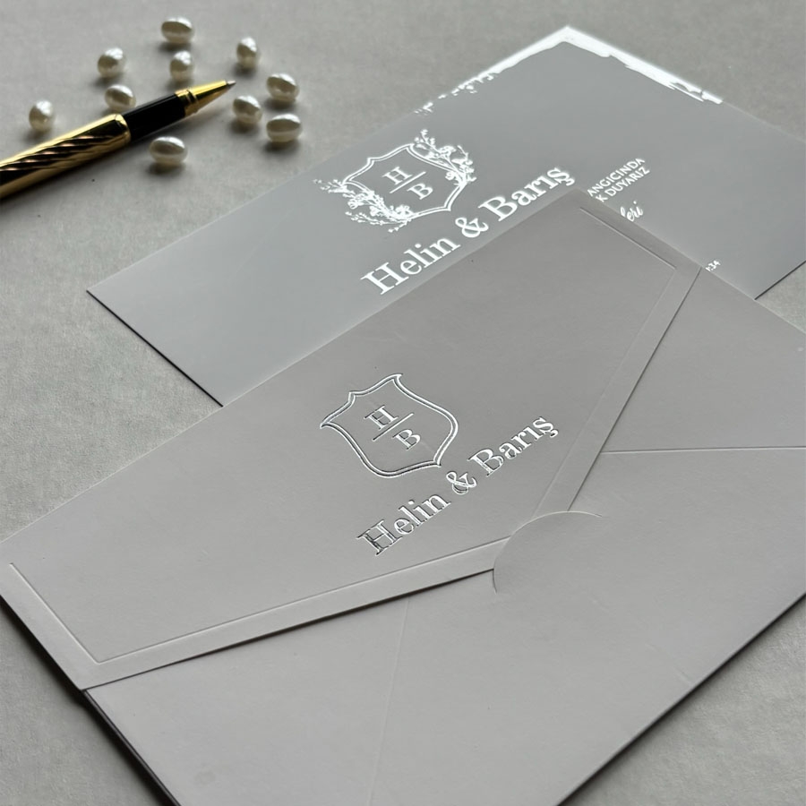 Zarf 220 gram renklendirilmiş bristol, iç kart ise 250 gram Amerikan Bristol karta baskı yapılmaktadır.