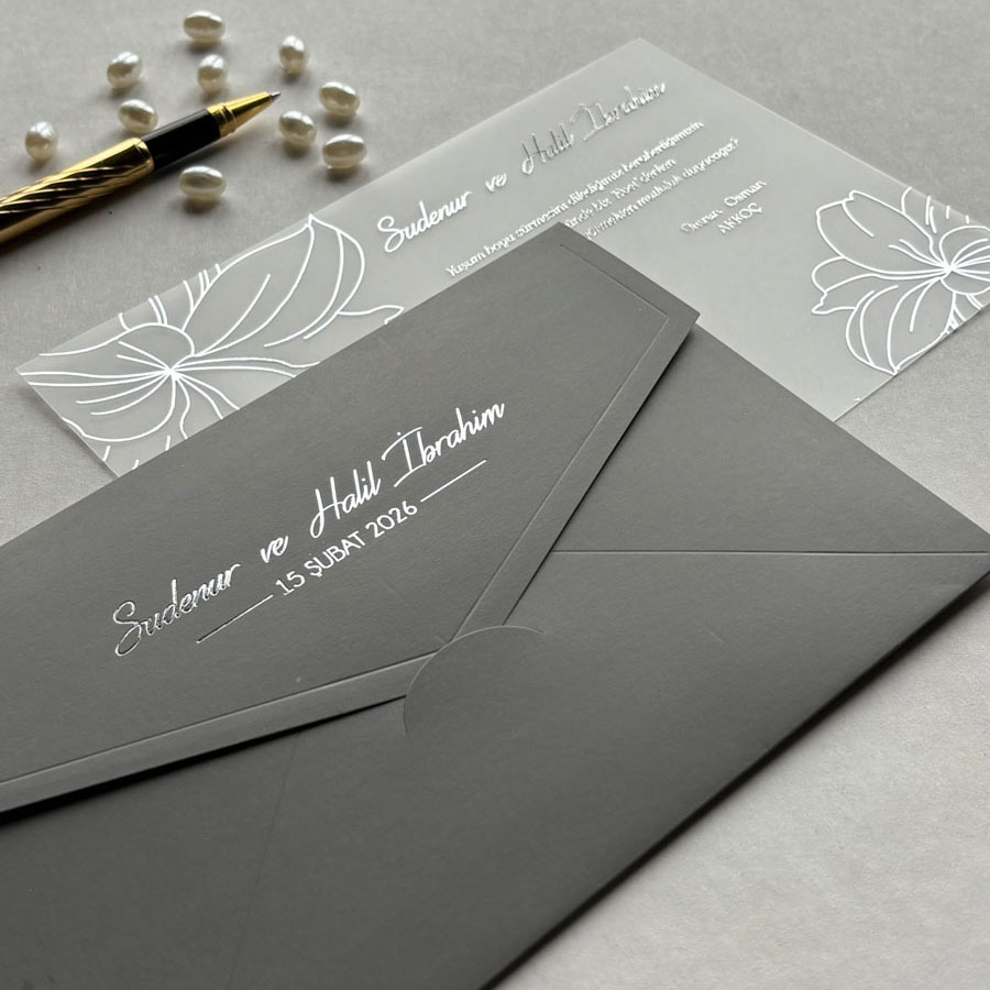 Zarf 220 gram renklendirilmiş bristol, iç kart ise 30 Mikron Şeffaf karta baskı yapılmaktadır.