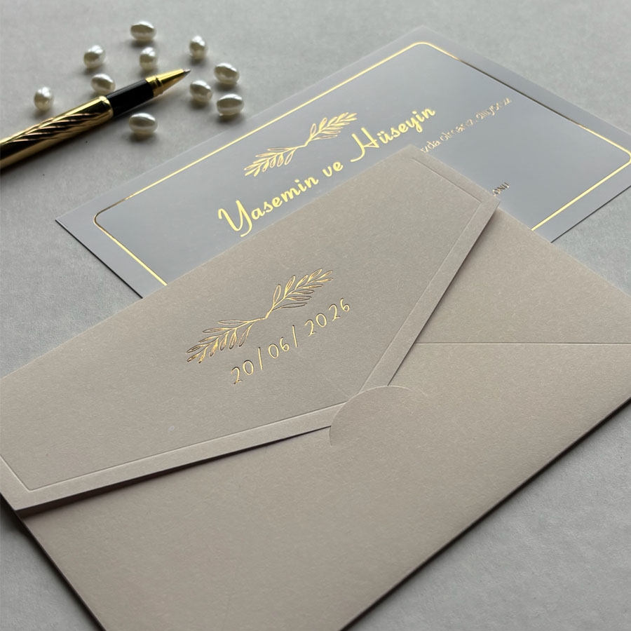 Zarf 220 gram renklendirilmiş bristol, iç kart ise 250 gram Amerikan Bristol karta baskı yapılmaktadır.