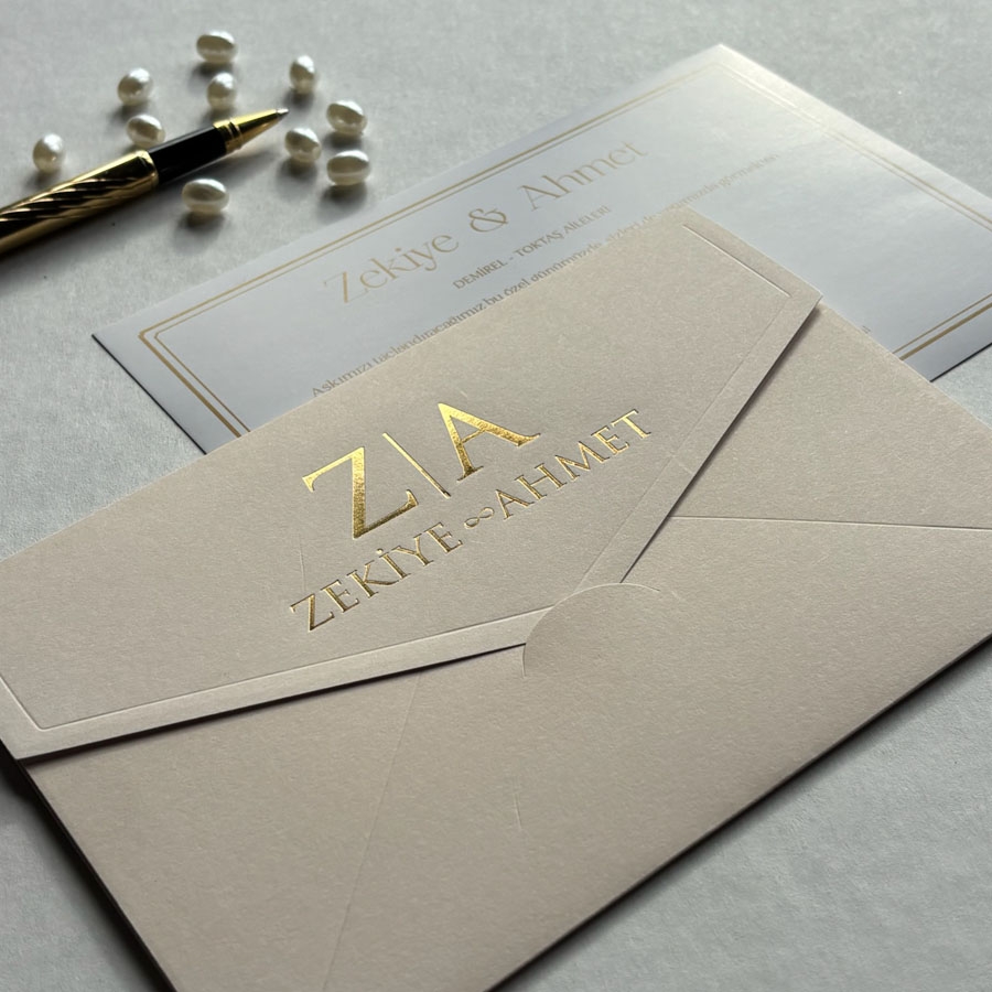 Zarf 220 gram renklendirilmiş bristol, iç kart ise 250 gram Amerikan Bristol karta baskı yapılmaktadır.