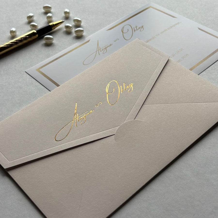 Zarf 220 gram renklendirilmiş bristol, iç kart ise 250 gram Amerikan Bristol karta baskı yapılmaktadır.