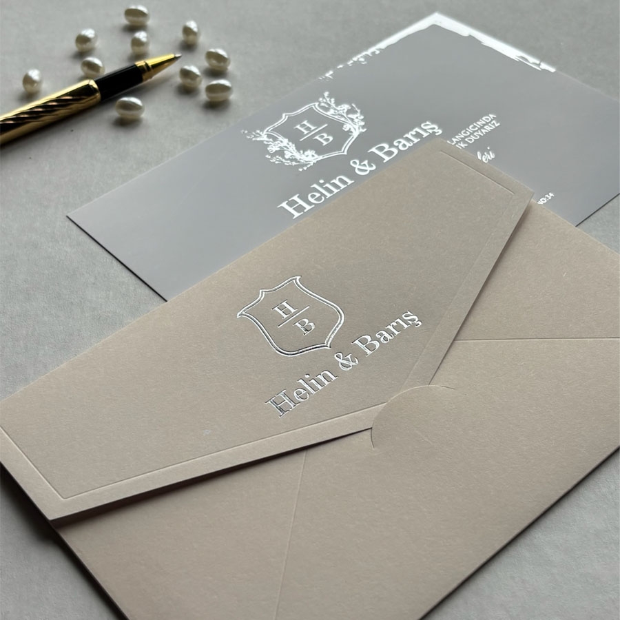 Zarf 220 gram renklendirilmiş bristol, iç kart ise 250 gram Amerikan Bristol karta baskı yapılmaktadır.