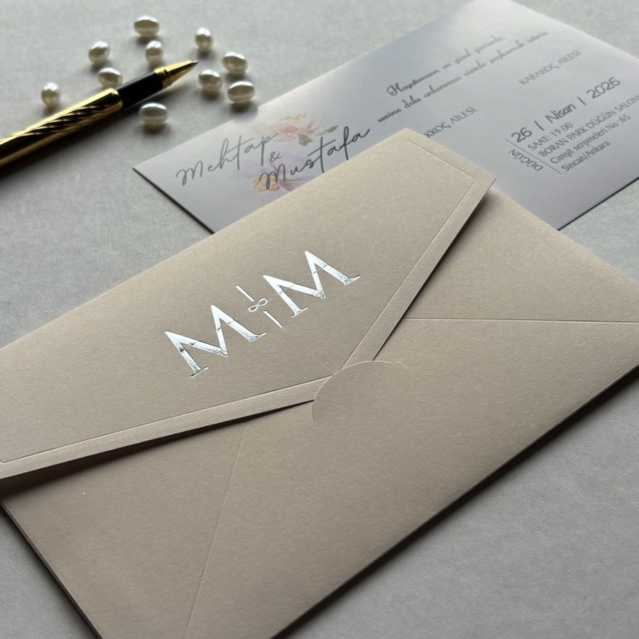 Zarf 220 gram renklendirilmiş bristol, iç kart ise 250 gram Amerikan Bristol karta baskı yapılmaktadır.