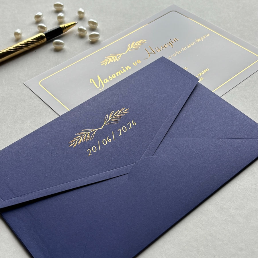 Zarf 220 gram renklendirilmiş bristol, iç kart ise 250 gram Amerikan Bristol karta baskı yapılmaktadır.
