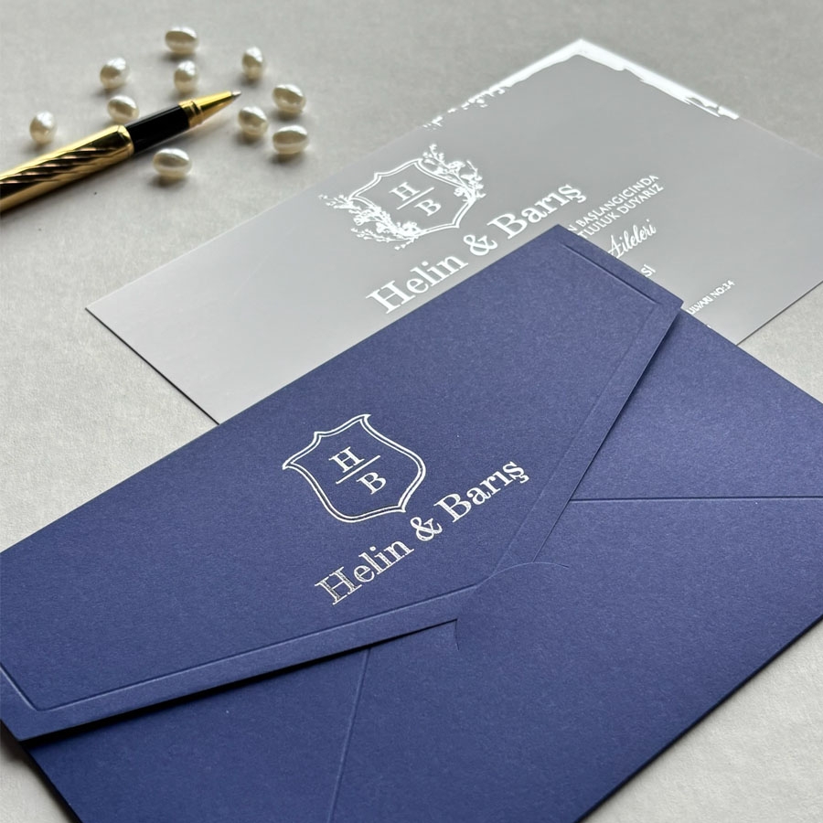 Zarf 220 gram renklendirilmiş bristol, iç kart ise 250 gram Amerikan Bristol karta baskı yapılmaktadır.