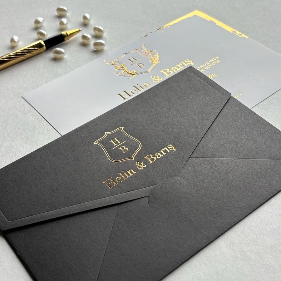Zarf 220 gram renklendirilmiş bristol, iç kart ise 250 gram Amerikan Bristol karta baskı yapılmaktadır.