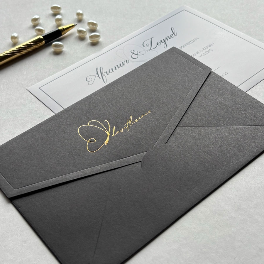 Zarf 220 gram renklendirilmiş bristol, iç kart ise 250 gram Amerikan Bristol karta baskı yapılmaktadır.