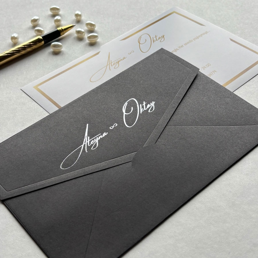 Zarf 220 gram renklendirilmiş bristol, iç kart ise 250 gram Amerikan Bristol karta baskı yapılmaktadır.